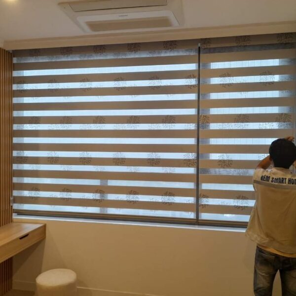 Rèm cầu vồng được thiết kế với hai lớp vải đan xen nhau, cho phép bạn điều chỉnh ánh sáng linh hoạt theo nhu cầu sử dụng. Bạn có thể dễ dàng kéo rèm lên để đón ánh sáng tự nhiên hoặc kéo rèm xuống để tạo không gian riêng tư.
