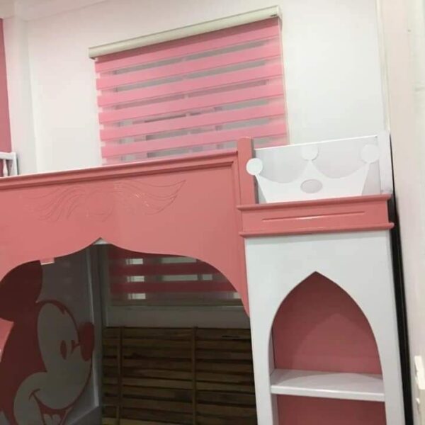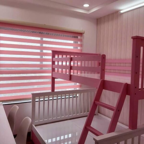 Màu hồng phấn luôn là sự lựa chọn yêu thích cho phòng của bé gái. Rèm cầu vồng màu hồng sẽ tạo ra một không gian dễ thương, ấm áp, giúp bé có giấc ngủ ngon và cảm giác được bao bọc trong một thế giới cổ tích.