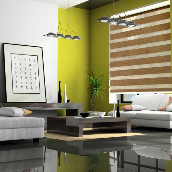 • Phòng khách phong cách Minimalist: Rèm sáo gỗ hoặc rèm cầu vồng.