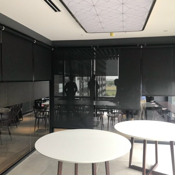 - Cản sáng hiệu quả: Chất liệu vải cao cấp của rèm cuốn giúp cản sáng tối đa, tạo không gian làm việc chuyên nghiệp và thoải mái.