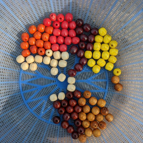 Hạt gỗ Bồ Đề được lựa chọn kỹ lưỡng từ những cây Bồ Đề có chất lượng cao, với đường kính khoảng 30-35cm. Quá trình chế tác bao gồm việc cắt gỗ thành các lát mỏng, rồi từ đó cẩn thận tạo ra từng hạt gỗ một cách tỉ mỉ và chi tiết