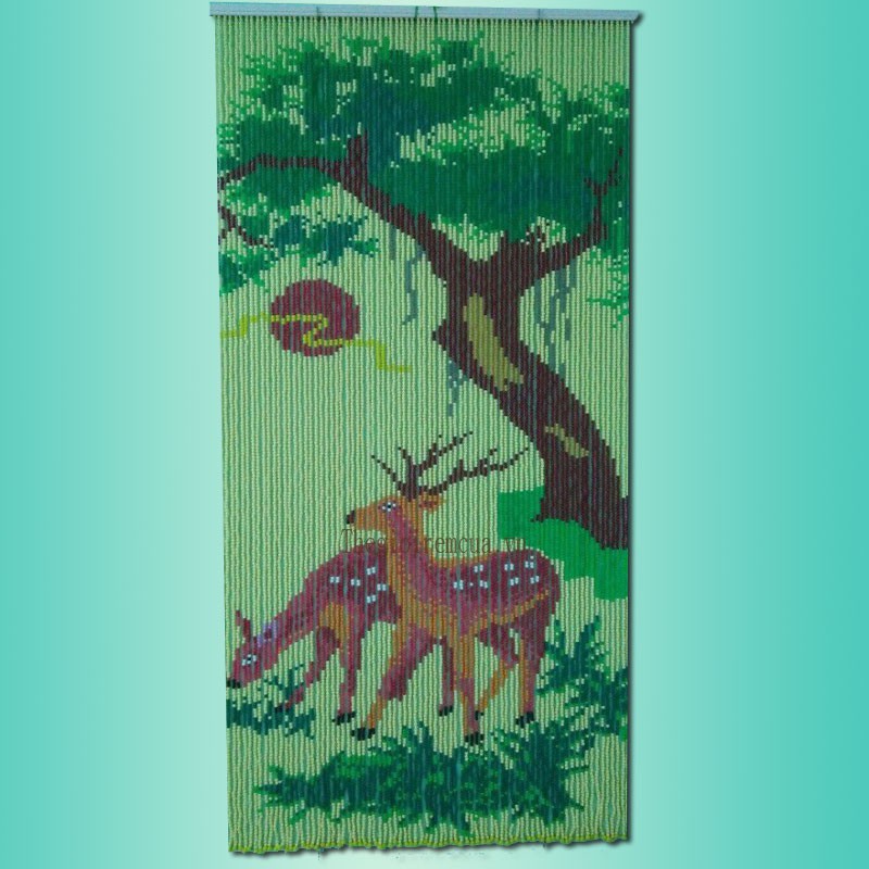Rèm hạt nhựa tranh con nai nền kem