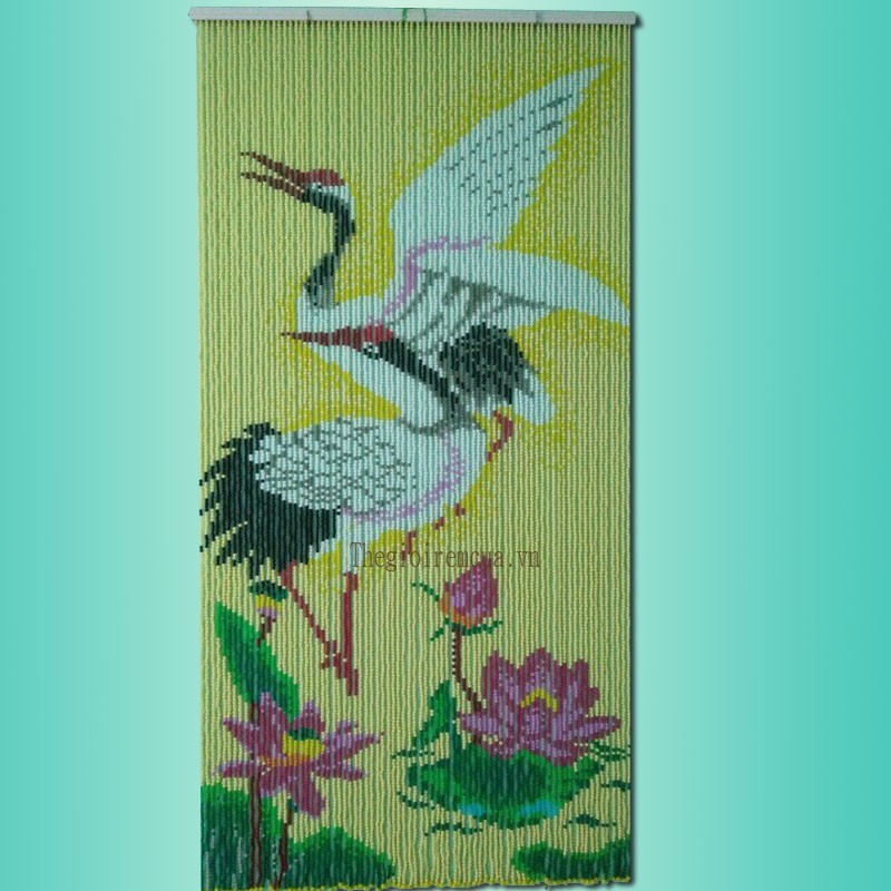 Rèm hạt nhựa tranh hạc bông sen nền kem