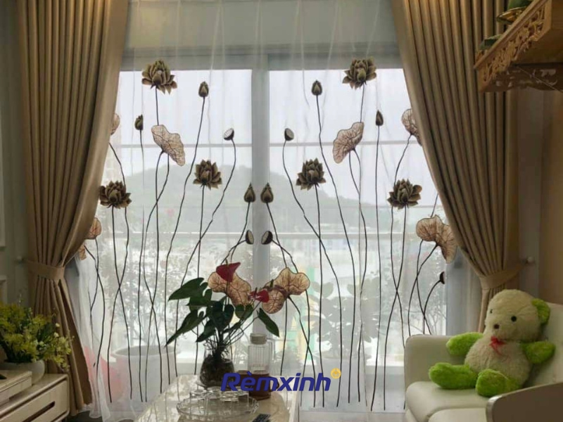 Rèm thêu nghệ thuật là loại rèm được thêu tay và các họa tiết trang trí được thêu bằng tay. Những đường nét hoa văn được thêu cẩn thận và tinh tế trên nền vải voan mỏng trong suốt.
