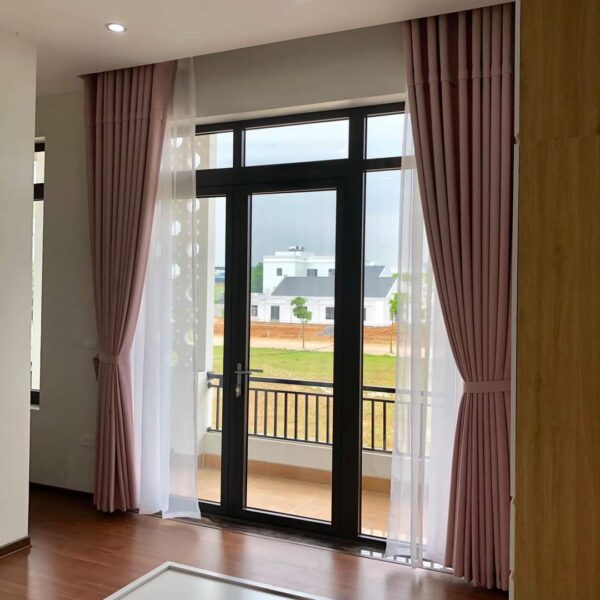 Rèm vải màu hồng