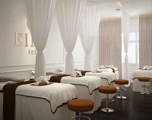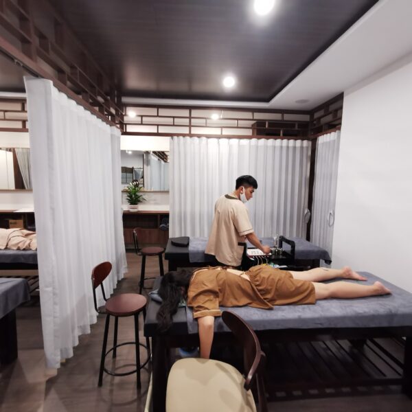 Rèm voan trang trí ngăn giường không chỉ giúp tạo ra một không gian riêng tư cho từng giường mát-xa hay liệu pháp, mà còn là điểm nhấn thẩm mỹ, góp phần tăng cường vẻ đẹp tự nhiên và dễ chịu cho spa.